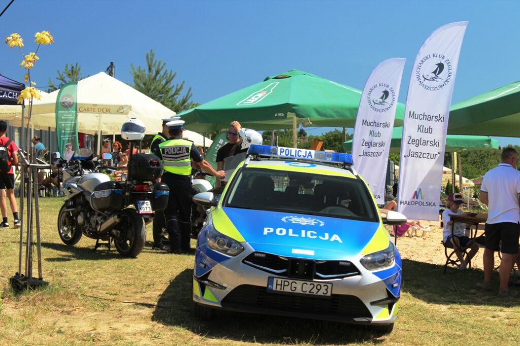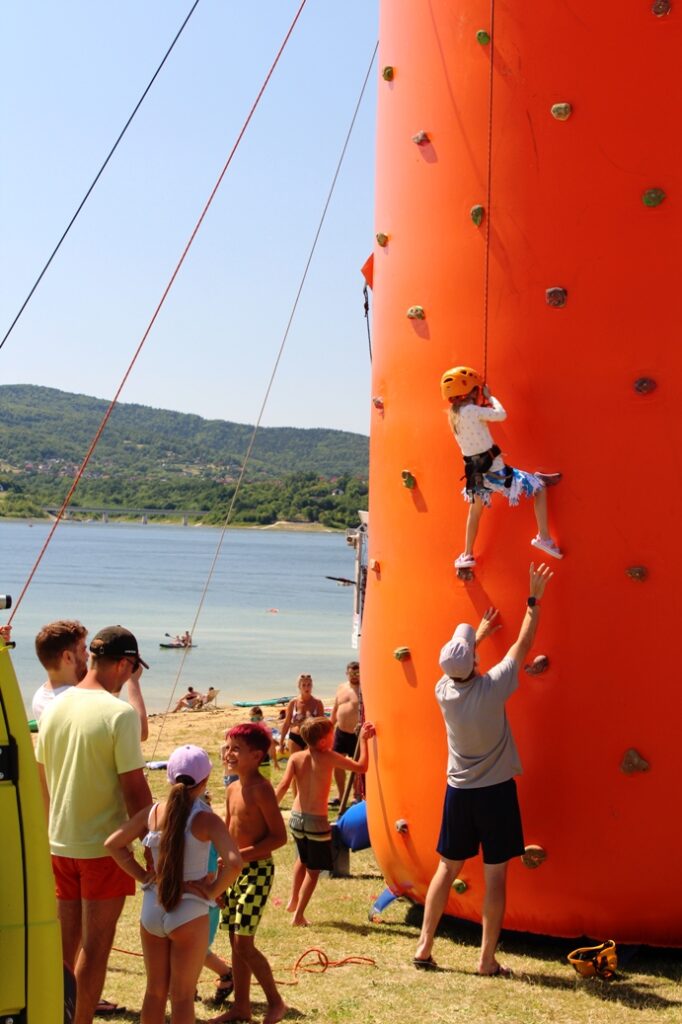Na wodzie działy się ciekawe rzeczy, ale i na brzegu nie zabrakło atrakcji. Na swoich stanowiskach zaprezentowała się Policja, organizując między innymi konkurs wiedzy. Straż i ratownicy uczyli podstaw resuscytacji krążeniowo-oddechowej. Ze strony Klubu, jeden z naszych doświadczonych instruktorów wprowadzał wszystkich zainteresowanych w arkana tajemnej sztuki wiązania węzłów. Odważni mogli spojrzeć na nasze jezioro ze szczytu ścianki wspinaczkowej.
